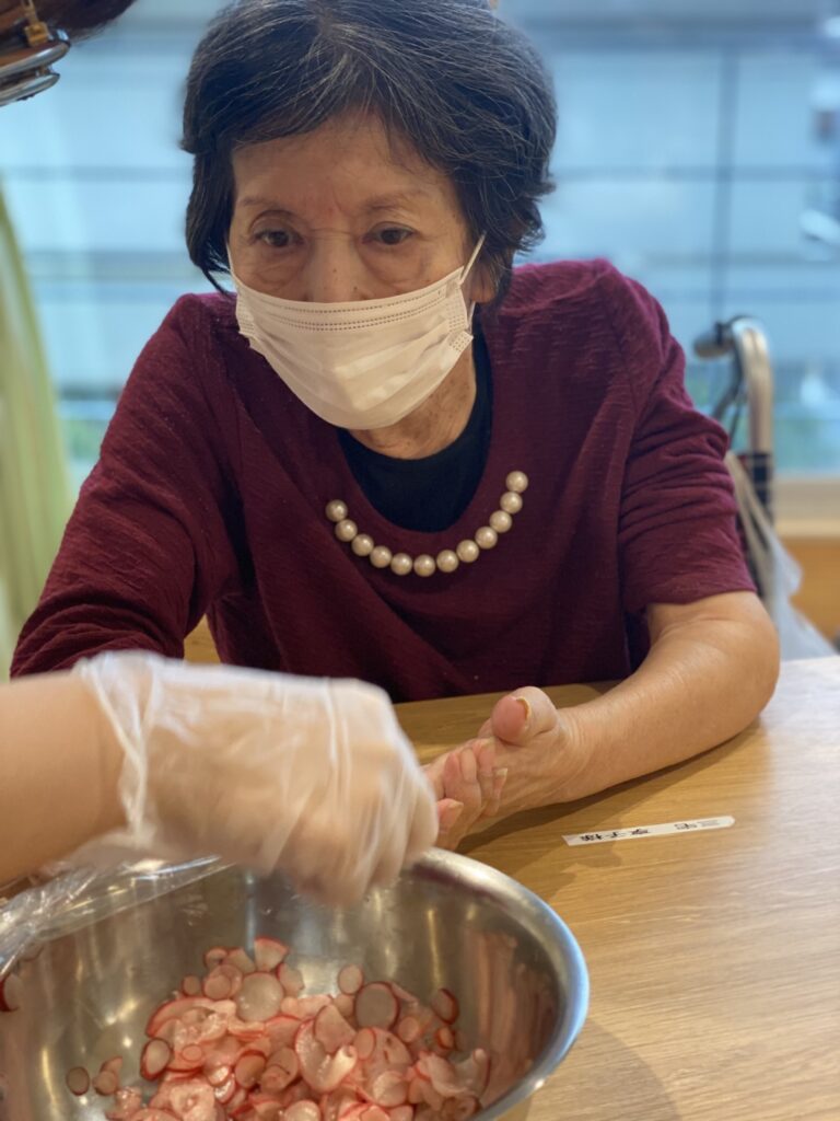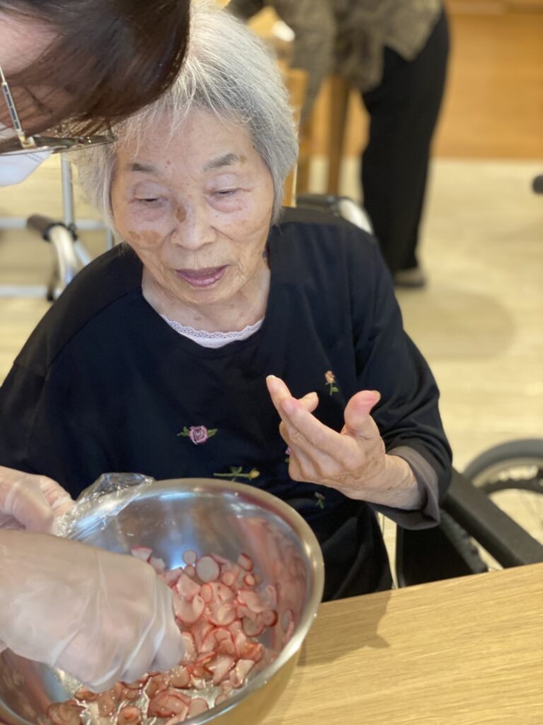 大根の甘酢漬け🥬 2025年9月10日 最終更新日時 : 2025年9月10日 k_komata_yamate_hp 皆さんで育てたミニ大根を収穫し、利用者さんに調理していただきました⭐ 大根の甘酢漬けです 味見をしながら手際よく作ってくださいました😊 皆さんにも試食していただき、良い味だね!と好評でした✨